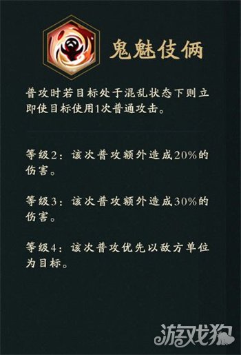 普攻时若目标处于混乱状态下则立即使目标使用1次普通攻击。