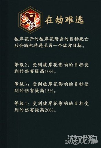 等级4:受到彼岸花影响的目标受到的伤害提高20%。