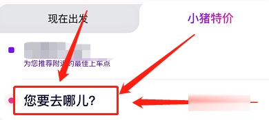 2、点击“上车”,确定上车地点。点击“你要去哪儿?”,确实下车地点。