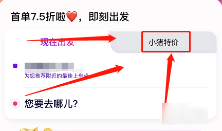 1、打开花小猪打车app,点击“小猪特价”选项。