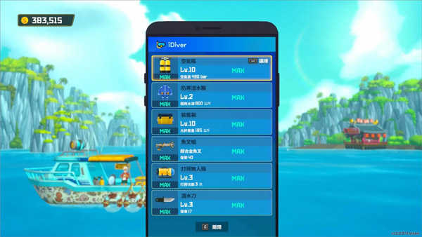 潜水装备强化需要需要消耗材料及游戏金币,装载箱强化后可以扩充角色背包携带数量,潜水服强化后可以下潜更高水深的地方,氧气瓶强化后可以提升氧气上限。