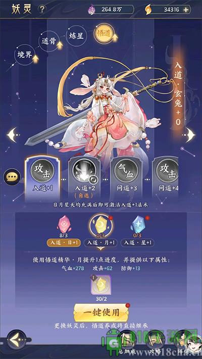 方法:【历练】界面左下角或从斗法页签进入,幻境除魔玩法会在开服第二天开启,每个关卡的怪物在挑战成功后可以扫荡,挑战和扫荡都需要消耗[精力仙酿],相当于通常意义的体力。精力仙酿会随着时间恢复且上限为240点,悟道养成在如+2、+5的特定等级都有强力的额外技能。