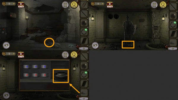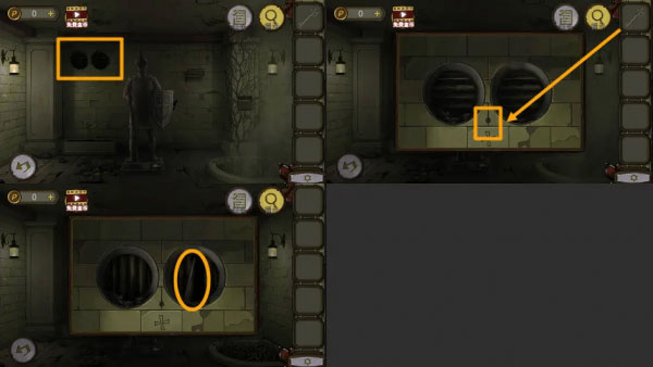 4、盾牌上拿到【金属圆片】,用拼图机关拿到的【钥匙】插入钥匙孔,拿到【十字架】。